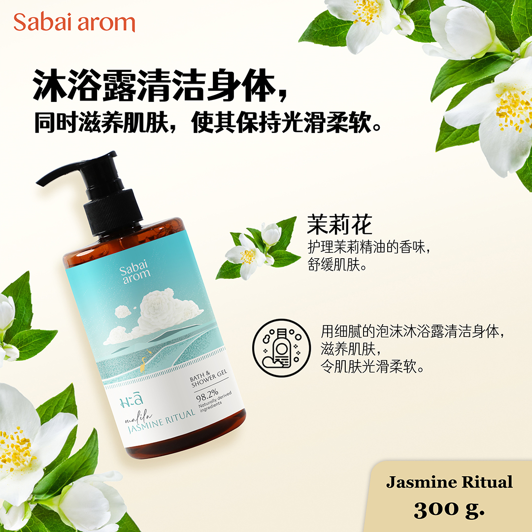 茉莉花香味沐浴露 300 毫升。 Sabai arom Jasmine Ritual Bath & Shower Gel 300ml