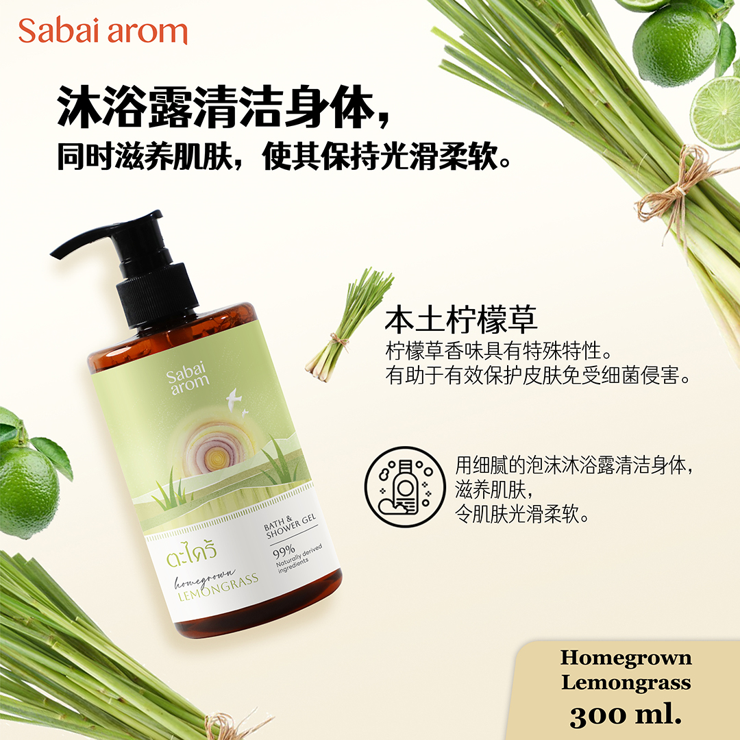 香茅草香味沐浴露 300 毫升。 Homegrown Lemongrass Bath & Shower Gel 300 ml.